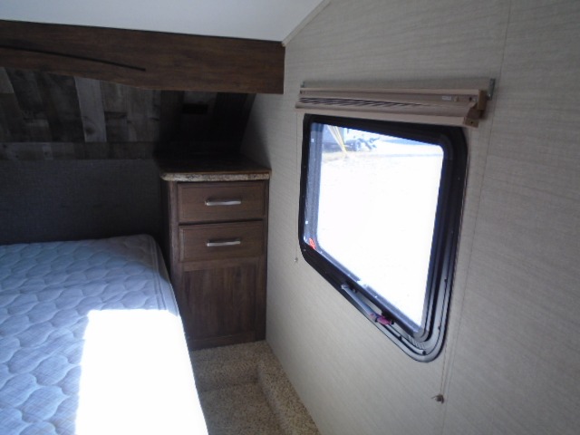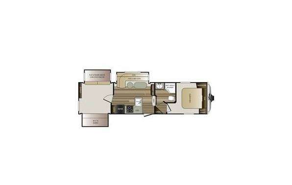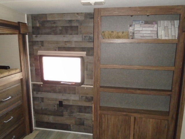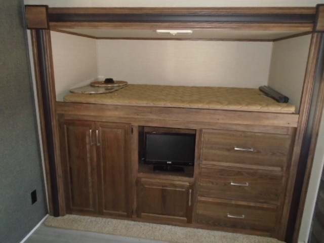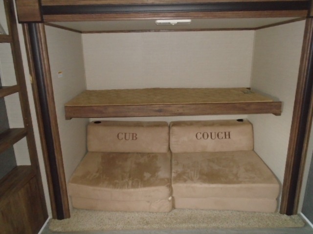 This bunkhouse fifth wheel camper is perfect for the larger family. Quad bunks in the rear. It features