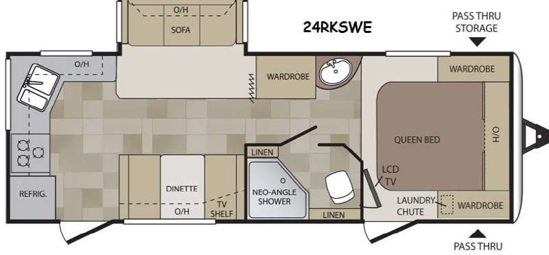 The outside of 24RKSWE also features a front pass-through compartment for all of your exterior camping gear and more!