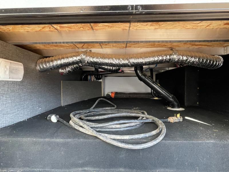 Step into the bedroom and see a comfortable queen size bed with wardrobe and nightstand, plus overhead storage. There is also a second wardrobe that slides out to create added space in the room, and so much more!