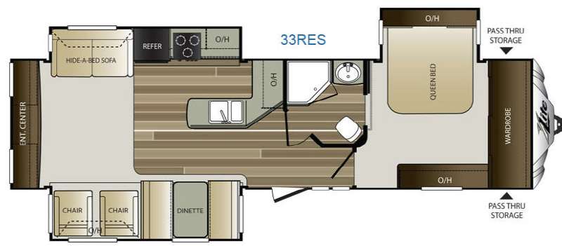 This Keystone Cougar X-Lite model 33RES has everything you need and more to enjoy your time away from home. This unit features a rear entertainment center, and triple slides that create an open at-home feel.