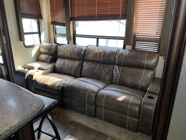 Step inside this 331 Fuzion toy hauler fifth wheel and begin planning your next big weekend of fun!