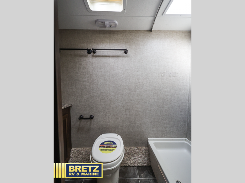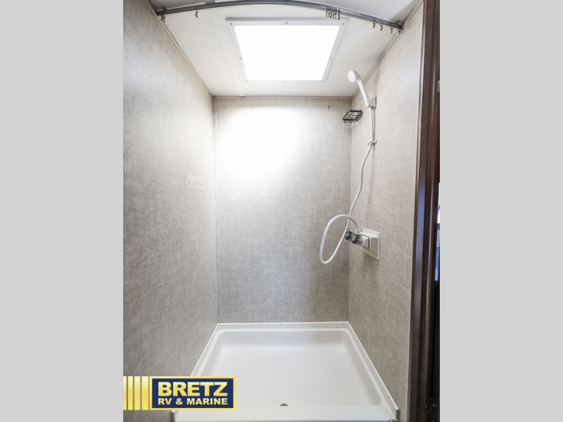 Enjoy the space you find inside this unit with a queen bed including dual closets, plus a large overhead cabinet as well. Beneath the front bed there is a spacious pass-through storage compartment for all of your outdoor camping gear as well.