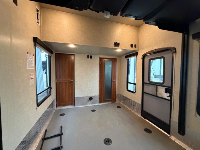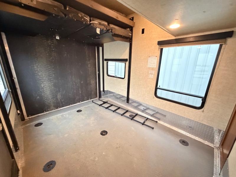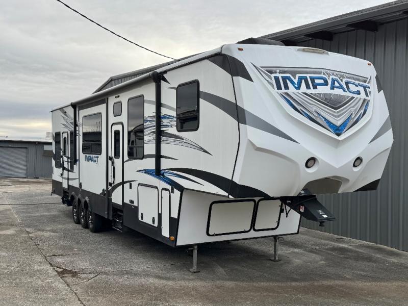 This Keystone Impact fifth wheel toy hauler 386 features plenty of space for all of your toys, triple slide outs, a loft that the kids will love, and a complete bath and a half!