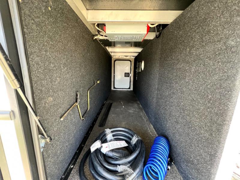 Continue on toward the rear and find a queen bed slide or optional king with storage beneath, and a slide out wardrobe opposite.