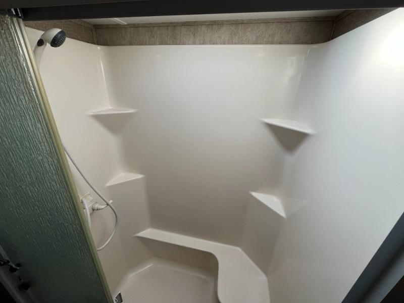 Step inside and be pleasantly surprised by the amount of interior space you see with dual opposing slides. There is an optional free standing dinette with four chairs and two recliners in a slide out to your immediate left.