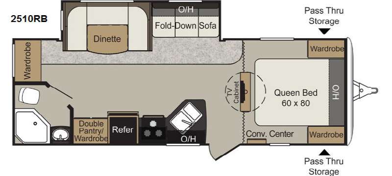 Enjoy camping with your family in this Passport Grand Touring travel trailer model 2510RB by Keystone RV. This unit features a rear bath layout, large slide out, and swivel TV cabinet for multiple viewing locations.