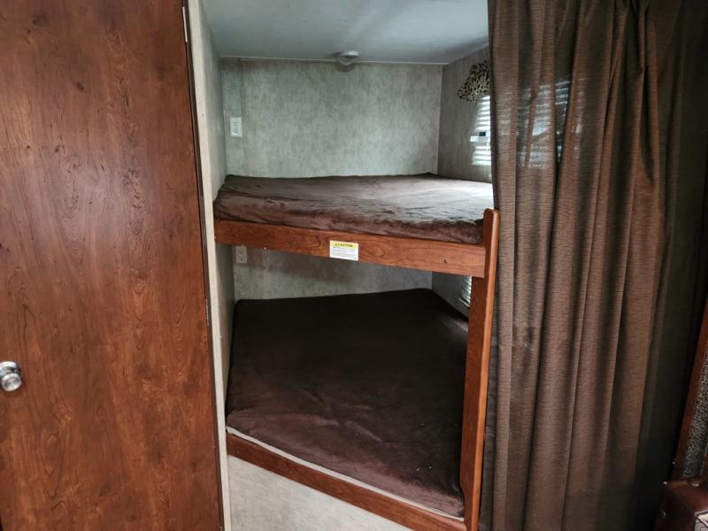 The rear corner double bed bunks are 51" x 74" and feature a ladder for easy access to the top bunk.