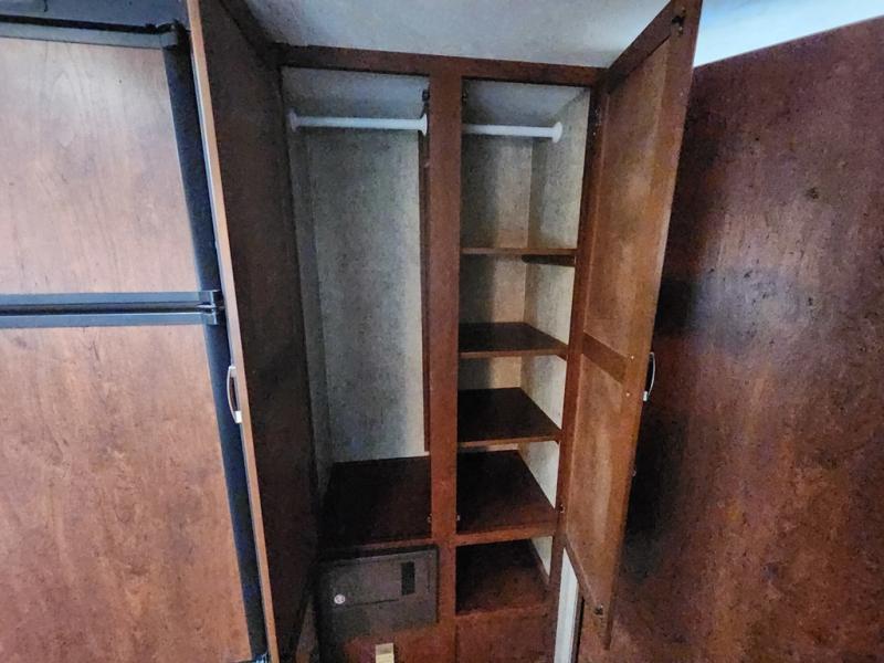 As you enter the most centrally located door you will see just how spacious this unit is. There is a front bedroom with queen size bed including wardrobes on either side for storage. There is also an overhead cabinet for added convenience. An entertainment center is located just off the foot of the bed and there are sliding doors on either side that can be closed providing more privacy in the bedroom at night.