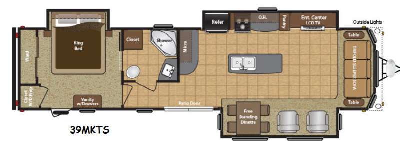 Step inside this spacious Keystone Retreat destination model 39MKTS. This model features triple slides, dual entry doors, and everything you need to have fun while away from home.