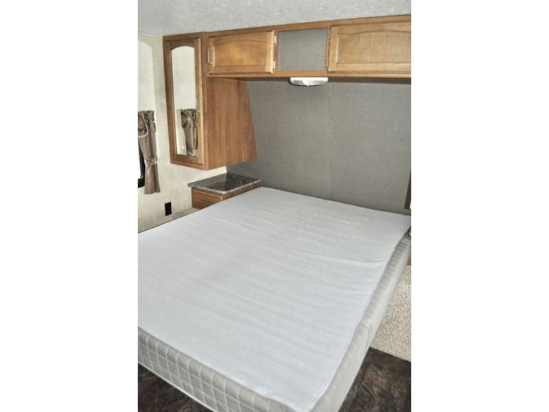 The front area features a queen size bed for a comfortable nights rest along with closets on both sides of the bed including nightstands. A curtain can be pulled at night to give you a bit more privacy if you like.