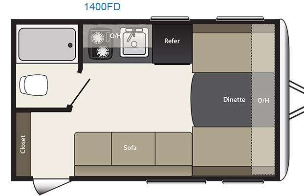 The rear dinette features a place to dine, and even play a game or two. There is an overhead shelf where you can storage extra linens and blankets, and also counter space behind the dinette seats on both sides.