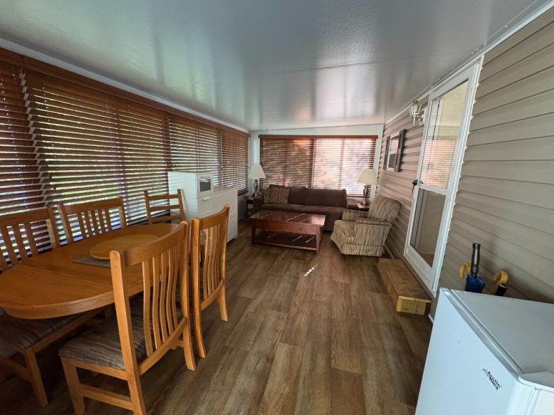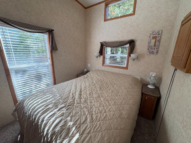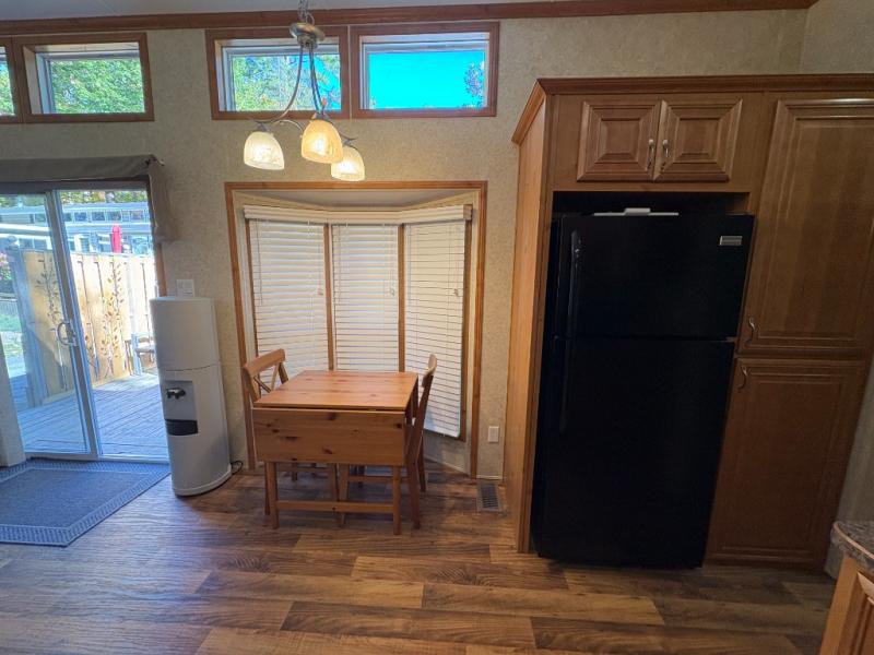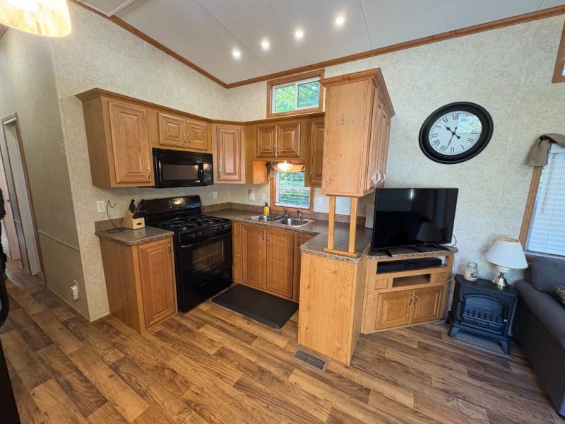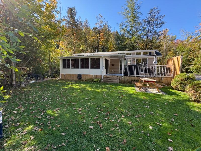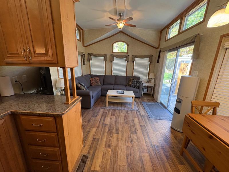FOR SALE IN THE PARKThis 2015 Kropf Canadian Lakeside 44’ model with a spacious 10’ x 20’ Florida room offers the perfect cottage. Open concept kitchen, living and dining space with modern finishes and a well-thought-out layout with 2 bedrooms—a queen master suite and a second bedroom featuring bunk beds with a double and twin for family or guests. The bright and open living space flows seamlessly into the Florida room, providing plenty of space to relax or entertain. Step outside to a 10’ x 12’ deck, ideal for morning coffee or evening BBQs overlooking the park. Two sheds provide extra storage for all your seasonal gear. This site shows true pride of ownership and has been lovingly maintained.