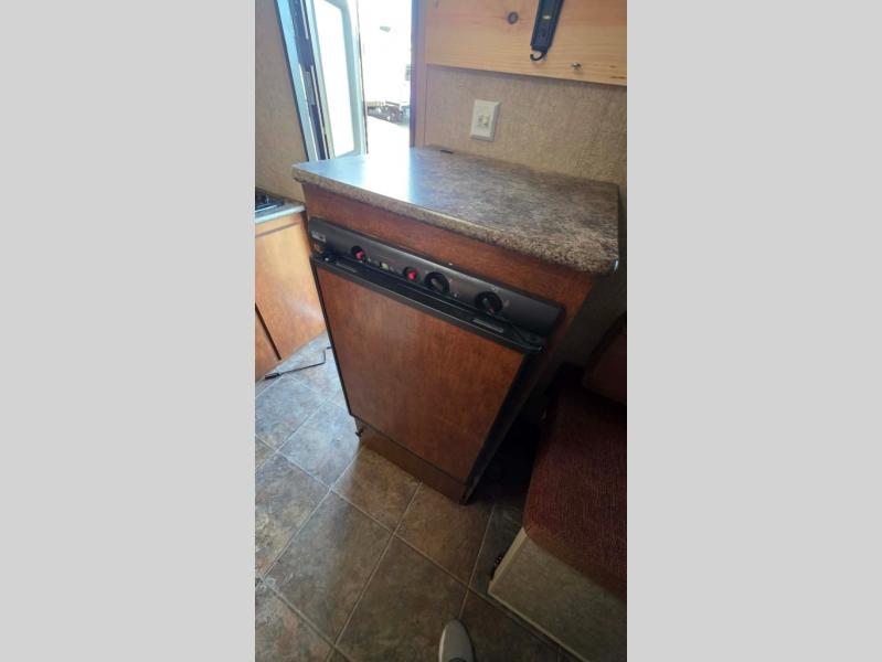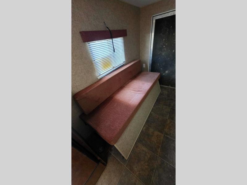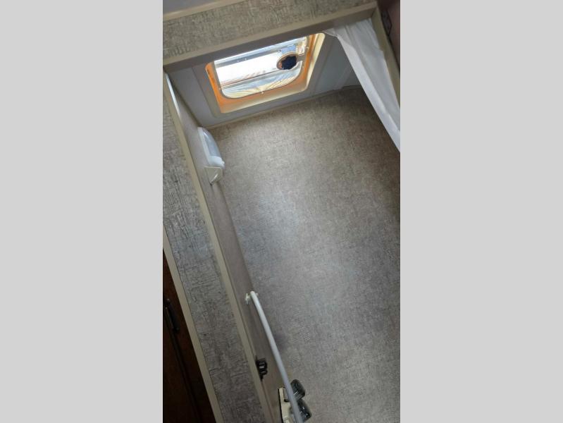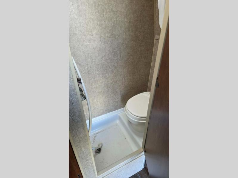 There is also a convenient toilet area located in the front of the travel trailer.