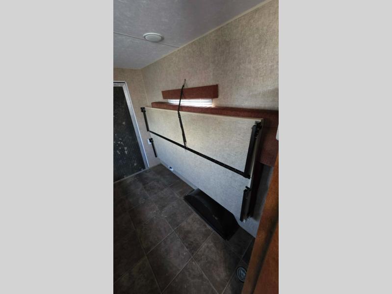The Sportsmen Classic 16FKTH toy hauler travel trailer by KZ offers a large ramp door for easy loading and unloading your off road toys.