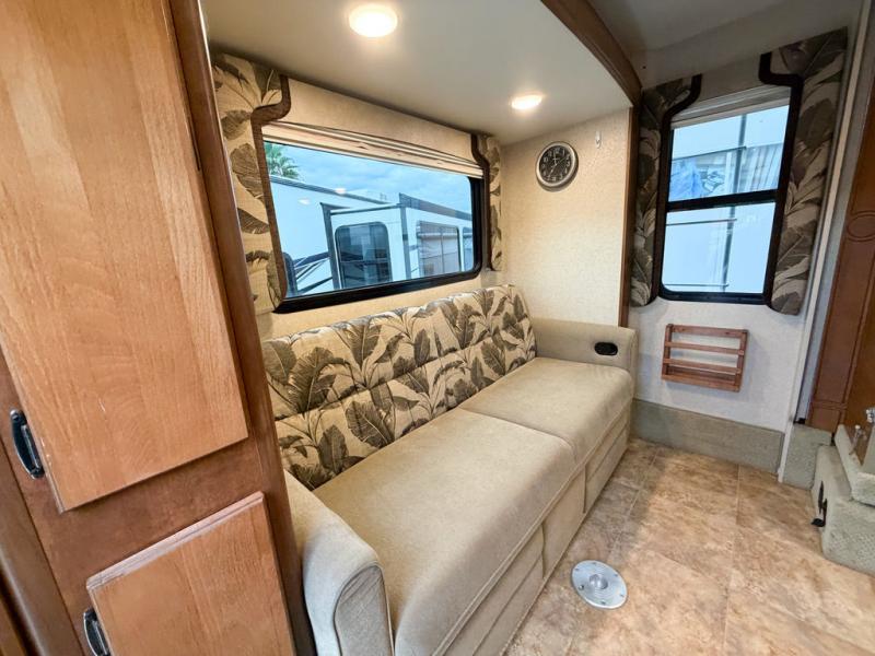 Step inside and notice the convenient sofa and pantry slide along the rear. This rear slide out, plus the dinette and refrigerator slide opposite the door side provide a spacious interior footpath throughout.