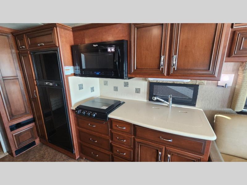 There are plenty of overhead cabinets throughout the motor home which provide much storage.