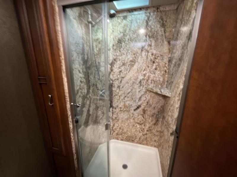 Both the driver and passenger seat easily swivel around to provide more seating in the living area. On the curb side of the motor home you will find a 74" hide-a-bed sofa, and recliner slide.