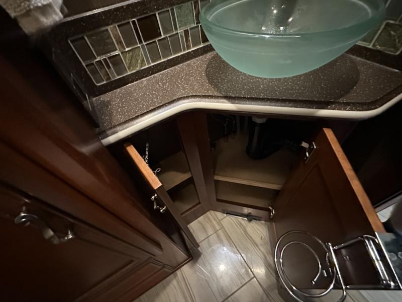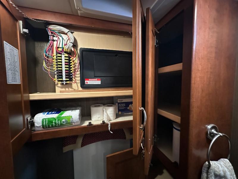 There are plenty of overhead cabinets throughout the motor home. You can even choose an optional washer and dryer.