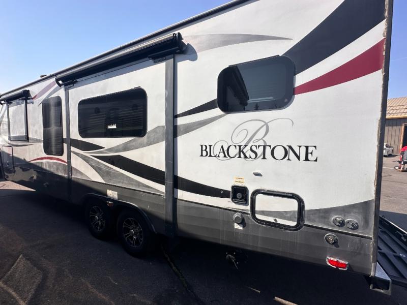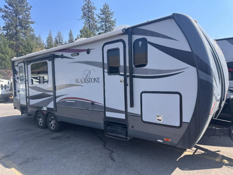 Outdoors RV offers the Black Stone 240RKSB travel trailer with triple slides and a rear kitchen.