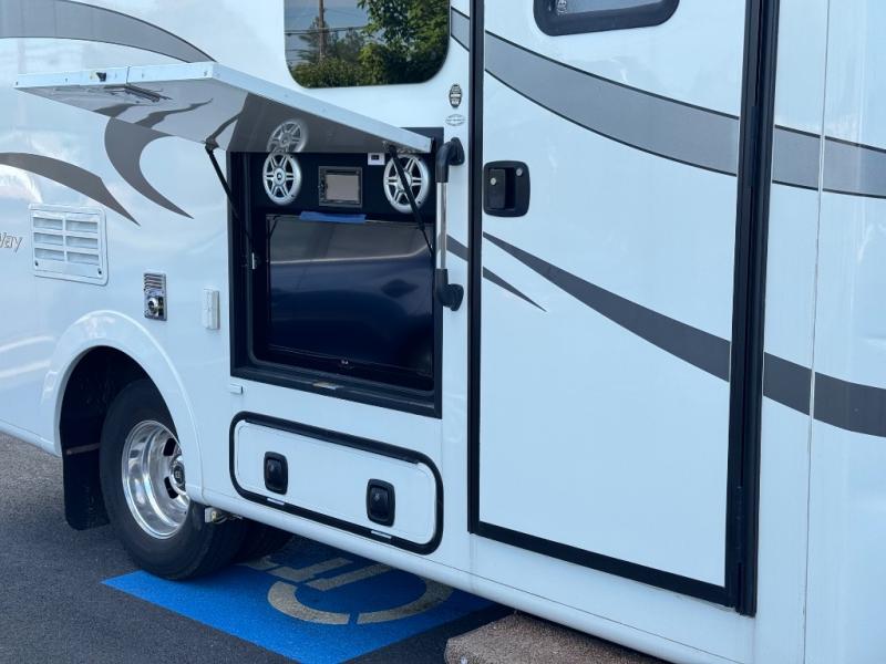 Plateau RB Motor Home, Driver and Passenger Seat Swivel, Table, Swing Out TV, Toilet, Shower, Furnace, Microwave, Refrigerator, Hanging Closet, Rear Bedroom with Permanent Rear Bed, Storage Below Bed, Swing Out TV, Slide Out Pantry, 2-Burner Range, Sink & Much More.