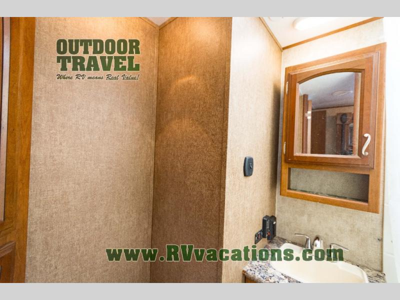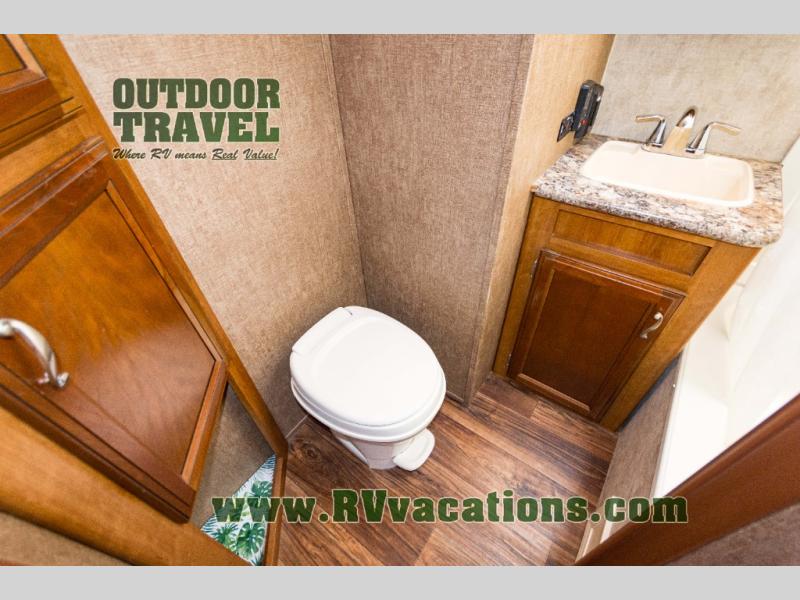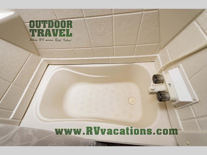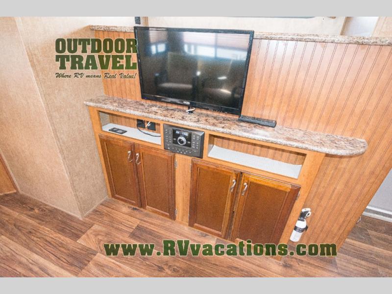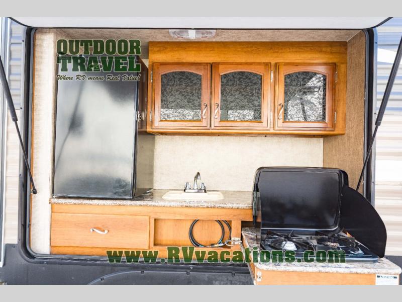 Outside you can enjoy fixing a quick meal or snack at the exterior kitchen which has a two burner range, sink, refrigerator, and pantry.