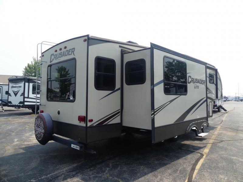 The Crusader LITE 28RL fifth wheel by Prime Time Manufacturing offers double slides and a rear living area.