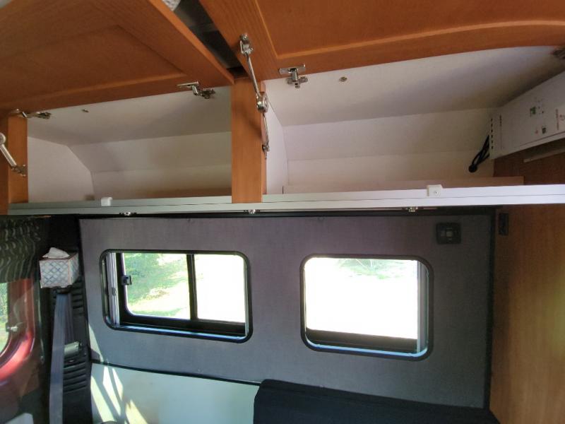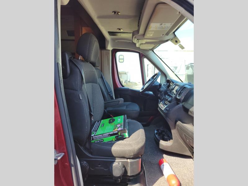 The Zion Roadtrek motor home Class B by Roadtrek has a comfortable cab with a driver and passenger seat.