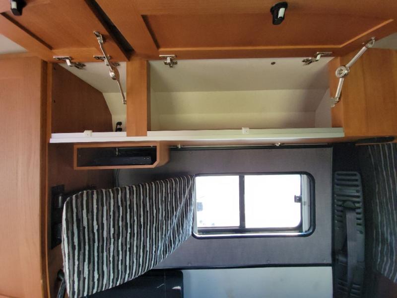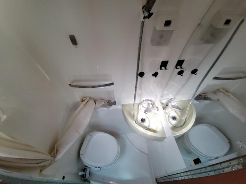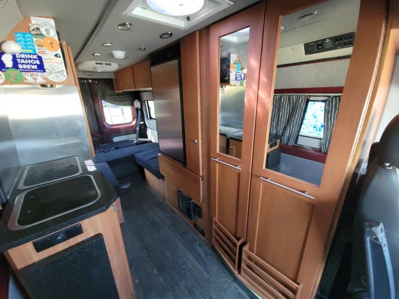 Located in the rear are two sofas which convert into either twin beds or a king bed. You can also place a table between the sofas which makes for a nice place to sit and enjoy your meals. While you travel there is even enough room between the sofas to store your bikes.