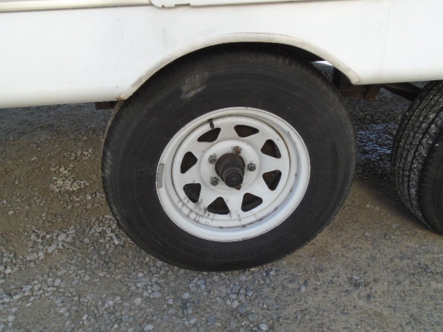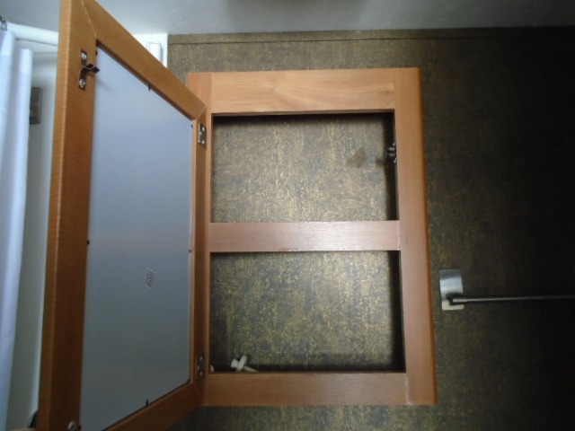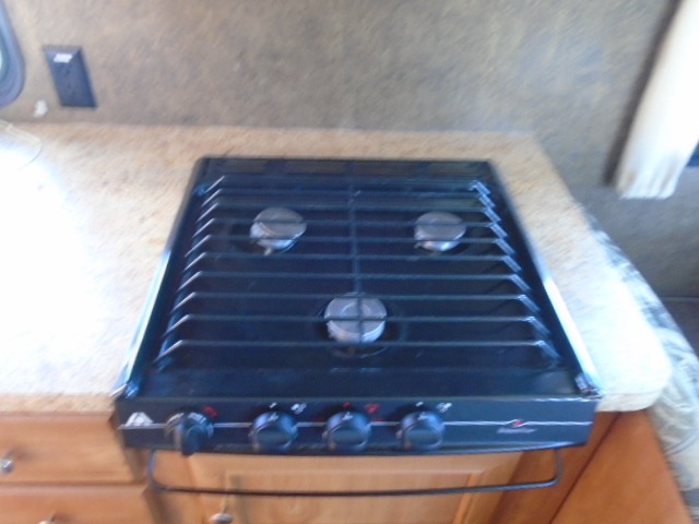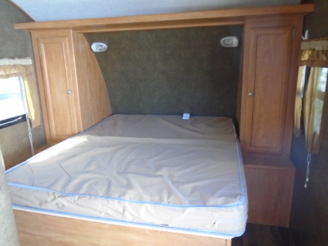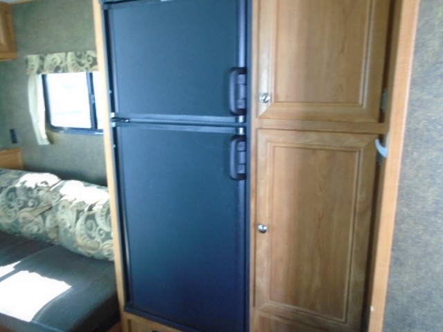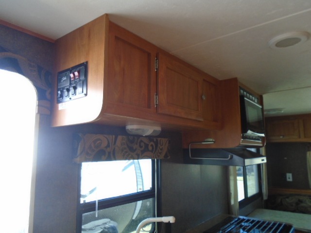 Along the rear wall of the trailer there is a nice size entertainment center.