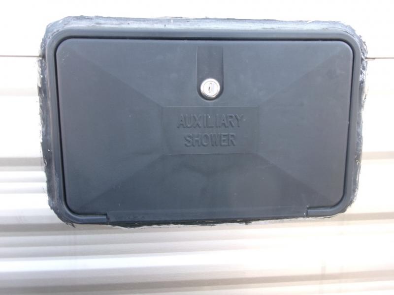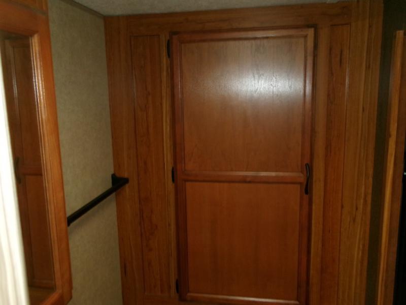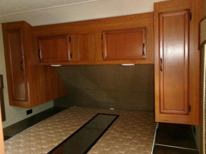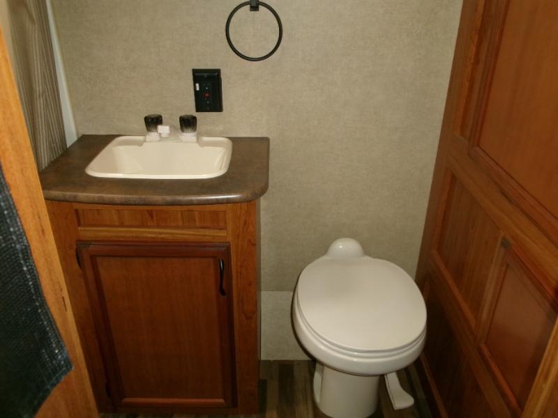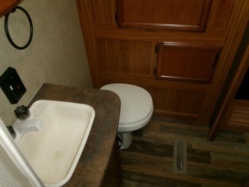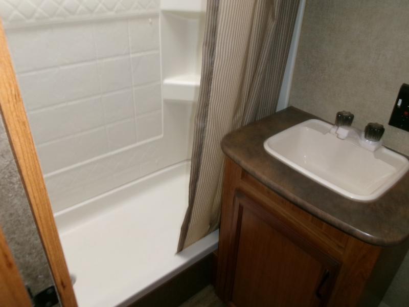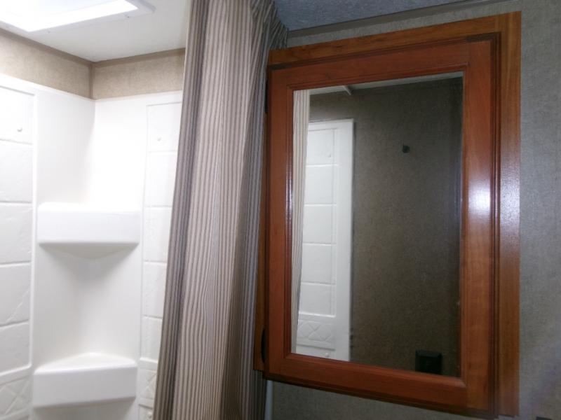 The rear bath provides a convenient shower, toilet, sink with medicine cabinet, wardrobe, and so much more.