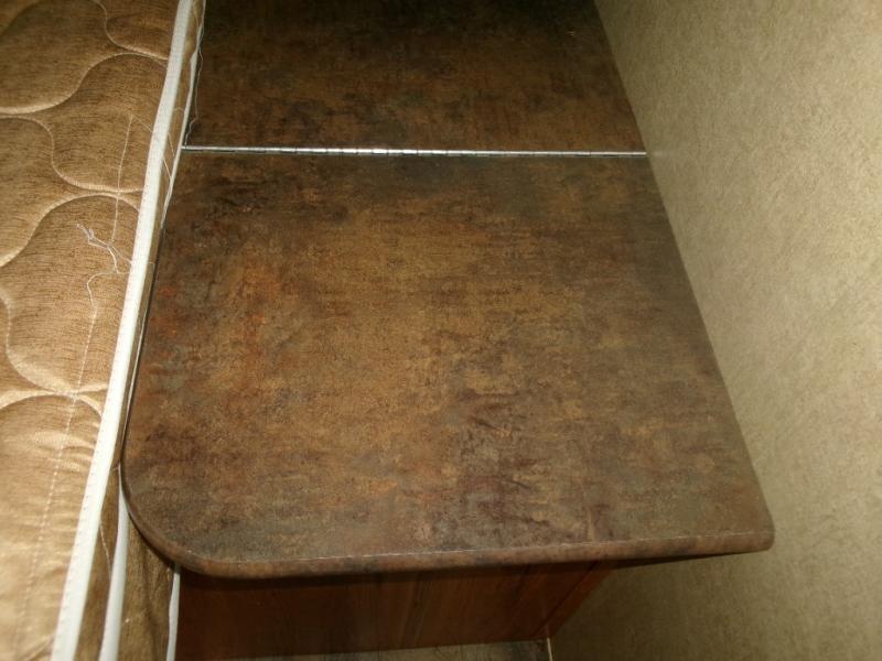 There is a booth dinette to the left of the entry door for meal time, playing board games, or just hanging out. It can also be made into additional sleeping space at night if needed.