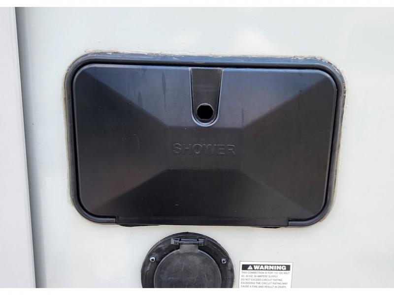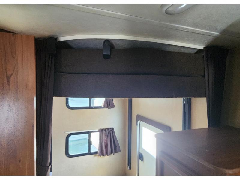 There is plenty of sleeping with rear double bed size Happi Jack bunks in the rear corner with a wardrobe at the foot of the beds. With the beds raised up to the ceiling you can create playing space for the kids during the day, and when it is time to pack up and head home you will have ample space for storing bikes, coolers, and more.