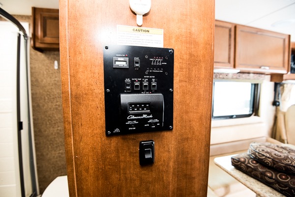 A 26" TV is mounted above the entrance for viewing easily from the sofa or overhead bunk.