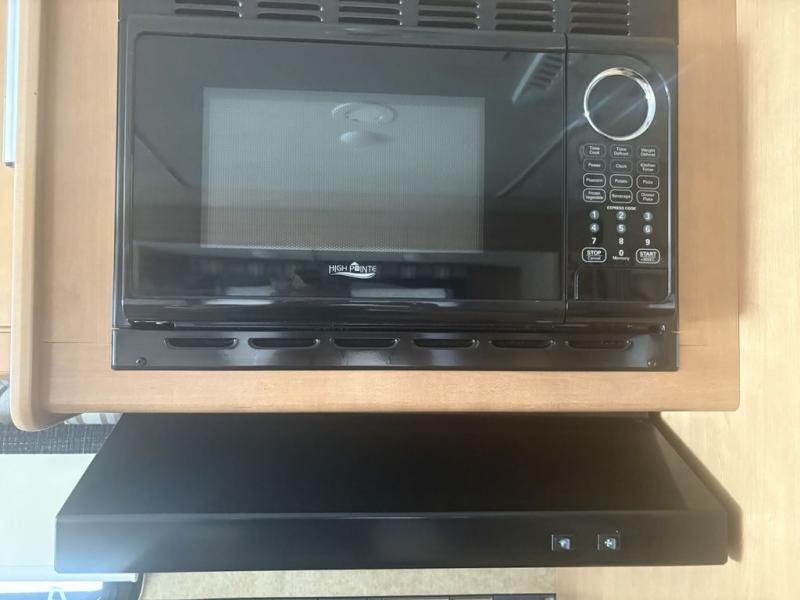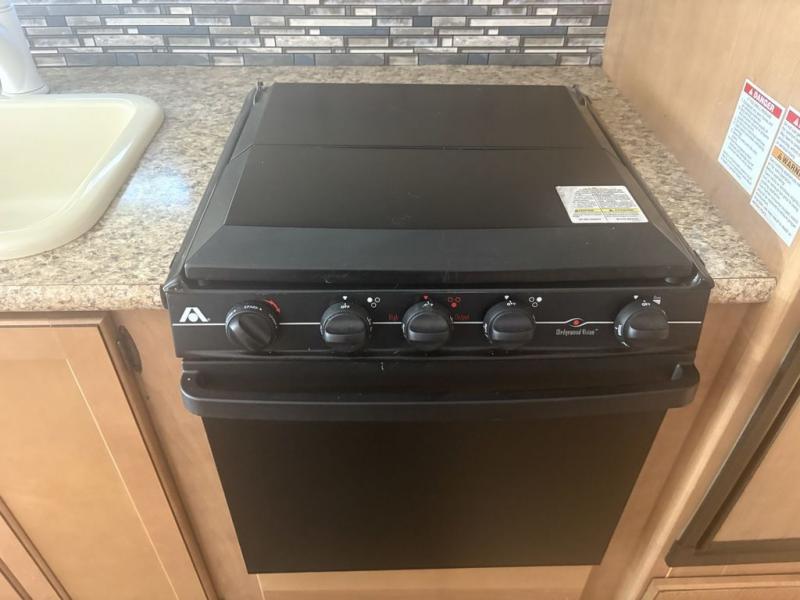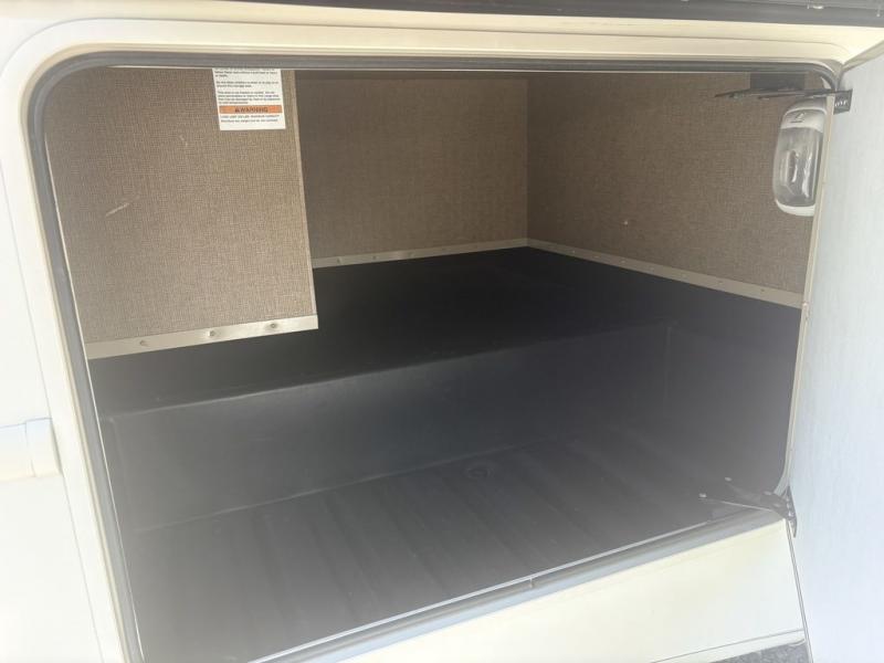 Step inside and notice a convenient broom closet on your left coming up the steps. Once inside you will see how open it feels with the large slide out with a jack-knife sofa with overhead cabinets and booth dinette fully extended.