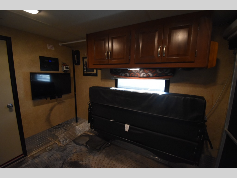 In front find a cab over bunk and 32" LED TV that swivels, plus so much more! You can also add an optional 32" LED TV along the outside of the unit if you wish too.