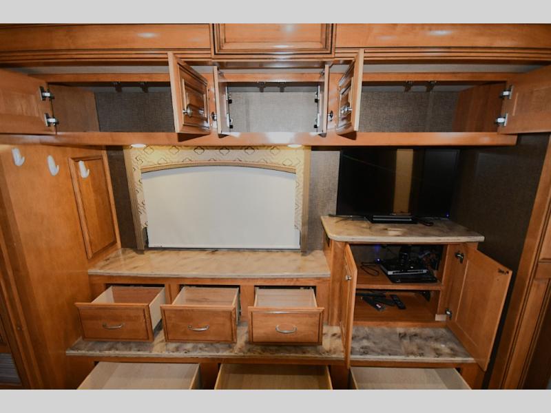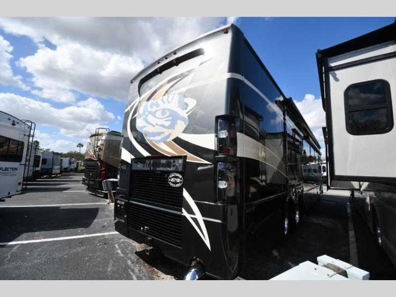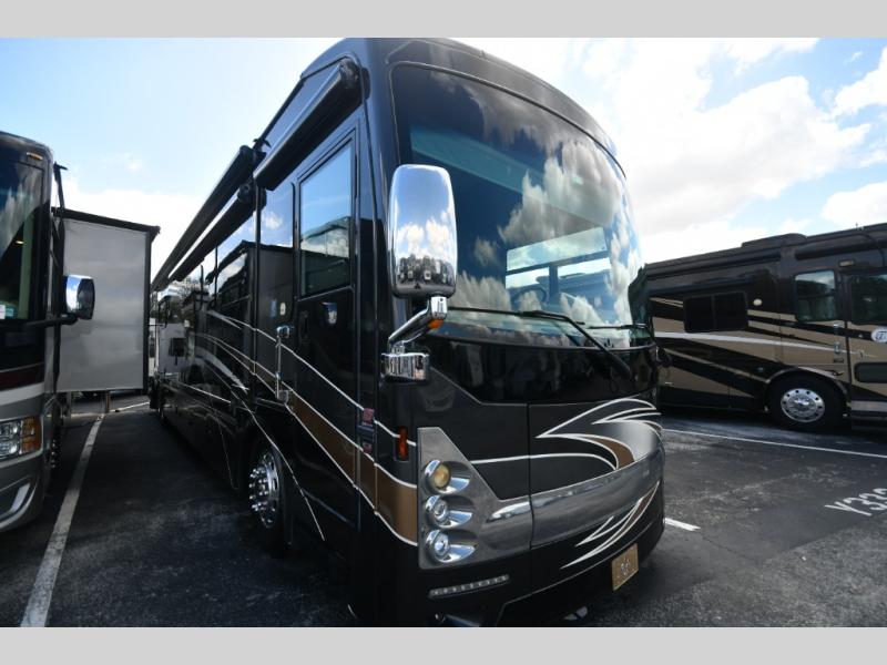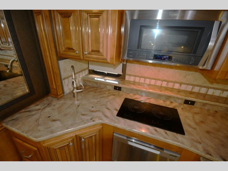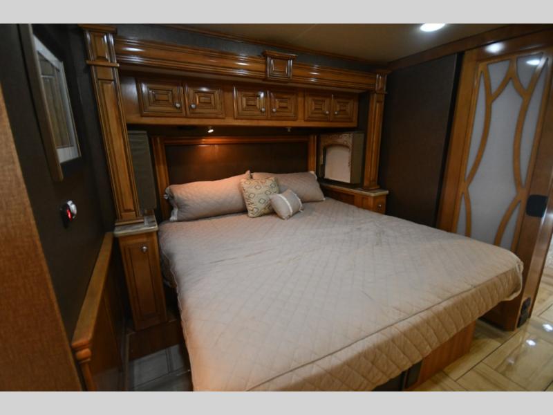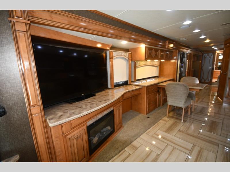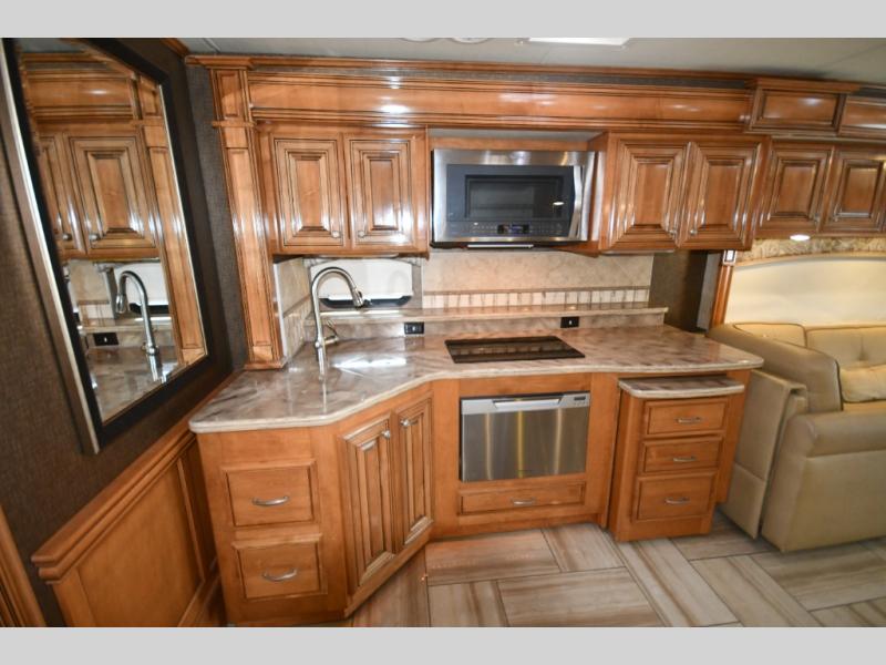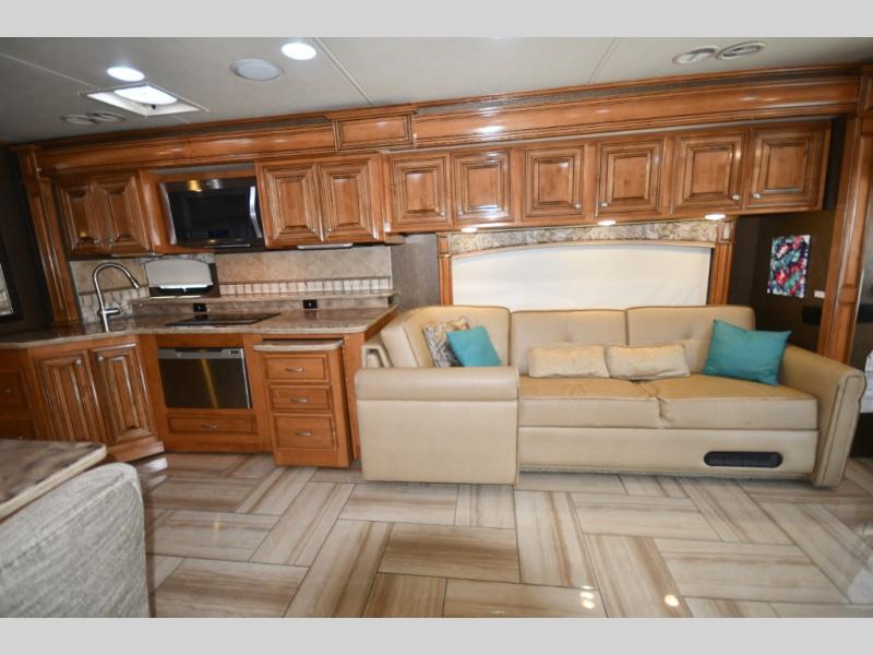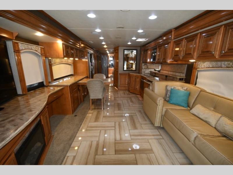 Designed for extended touring and full-time RV living, the 45AT floorplan offers expansive living space with multiple slide-outs, high ceilings, and elegant residential finishes. Solid surface countertops, polished tile flooring, hardwood cabinetry, and designer furnishings create a sophisticated interior that rivals high-end condominiums.