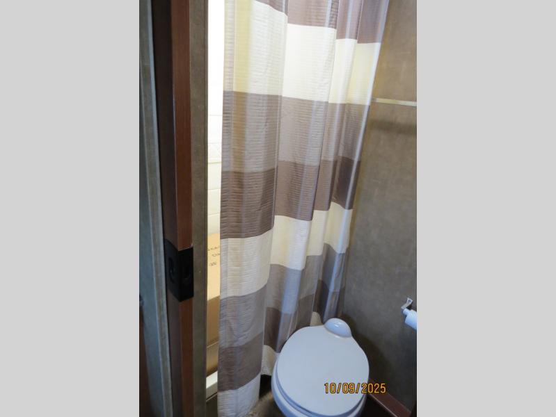 There is a hide-a-way table and two seats to the left of the entrance with seat belts just like the sofa features for safe traveling. You will also enjoy the 32" LED TV found next to the sofa slide out making it easily viewable from anywhere in the front.