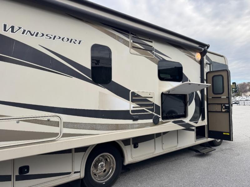 Below NADA Wholesale Cost!The Windsport 27K class A motor home by Thor Motor Coach features a large single slide, king size bed, and exterior rear mega storage compartment for all of your outdoor camping gear and more.