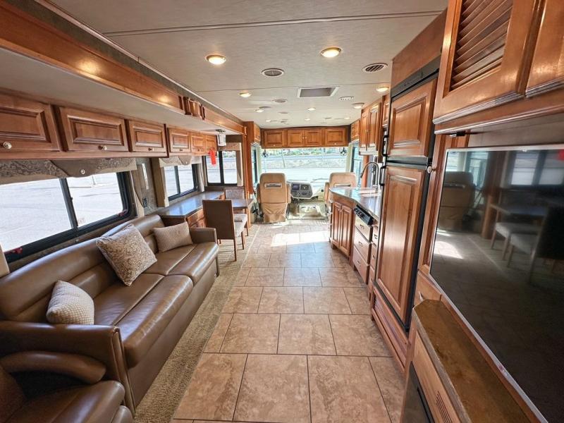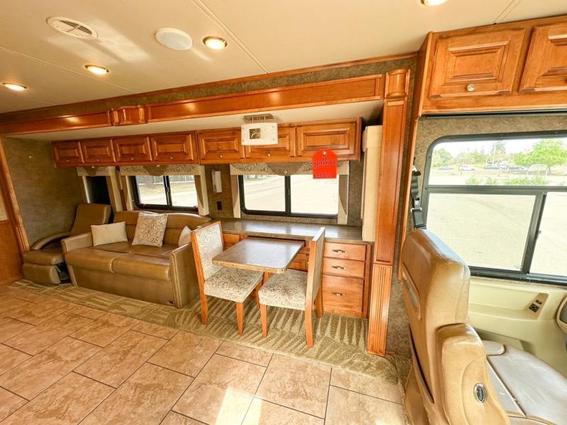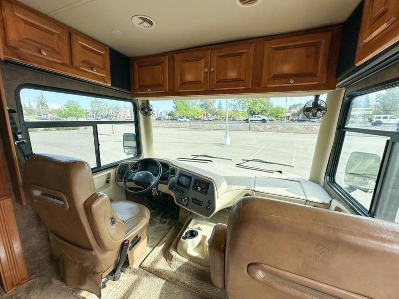 As you enter the coach, the front includes two captain's chairs, overhead cabinets at each side, an optional TV at the center front and an optional driver side door.