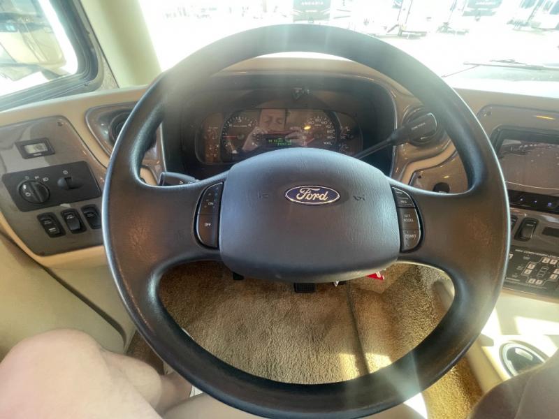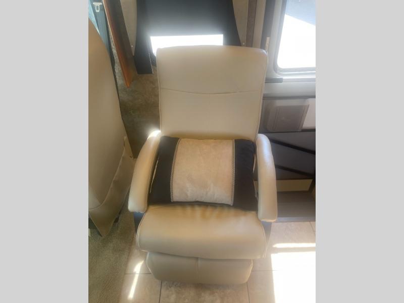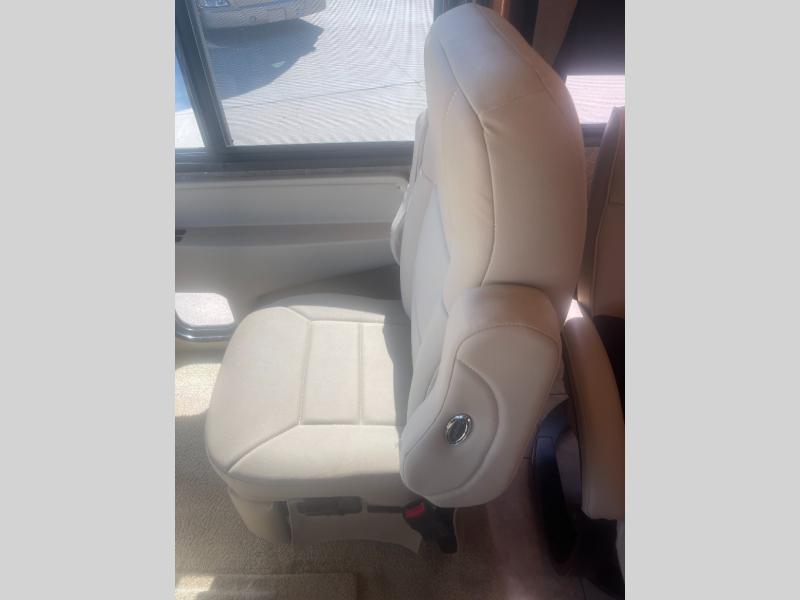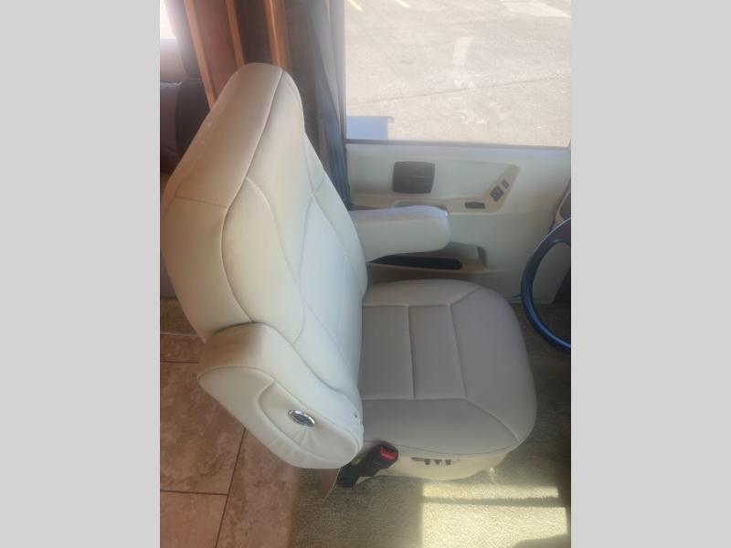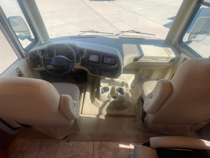 In the cab area you will find two captain's chairs, overhead cabinets at each side, an optional center TV and an optional driver side door.