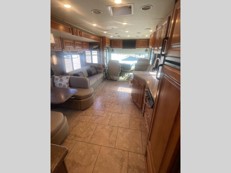 The Allegro 32 CA class A motorhome from Tiffin offers sleeping space for five and lots of floor space with double slides including a large slide out in the living/dining area.