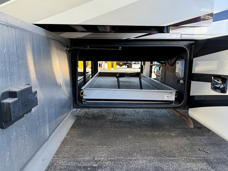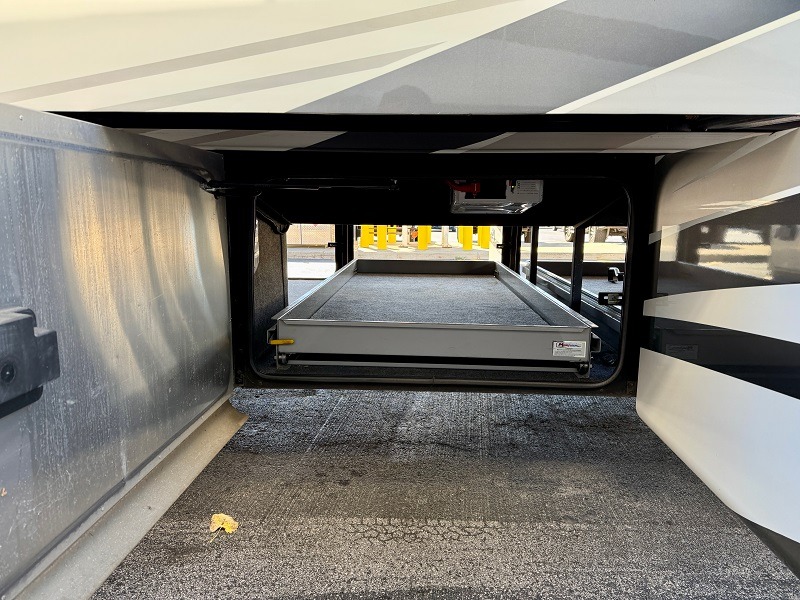 This unit also features several other options like, a u-shaped dinette, or an entertainment center with one ultra leather lift chair and a flip up table.