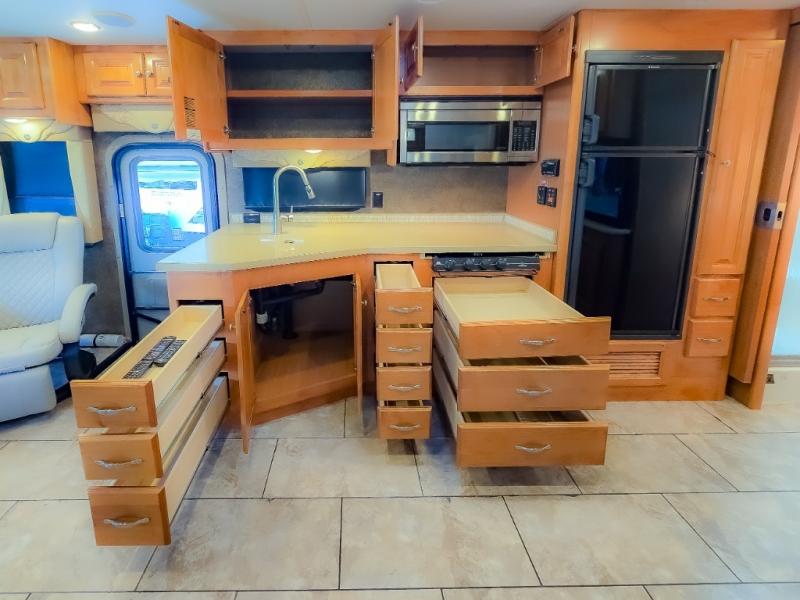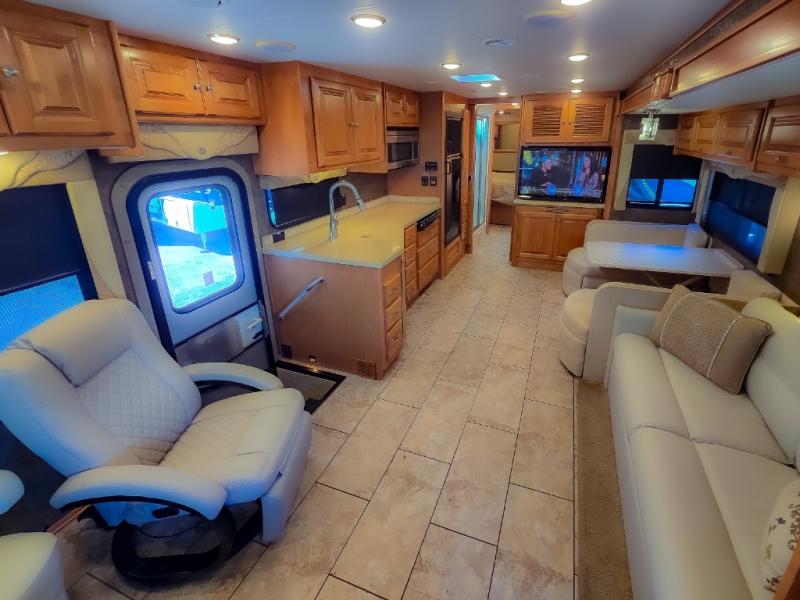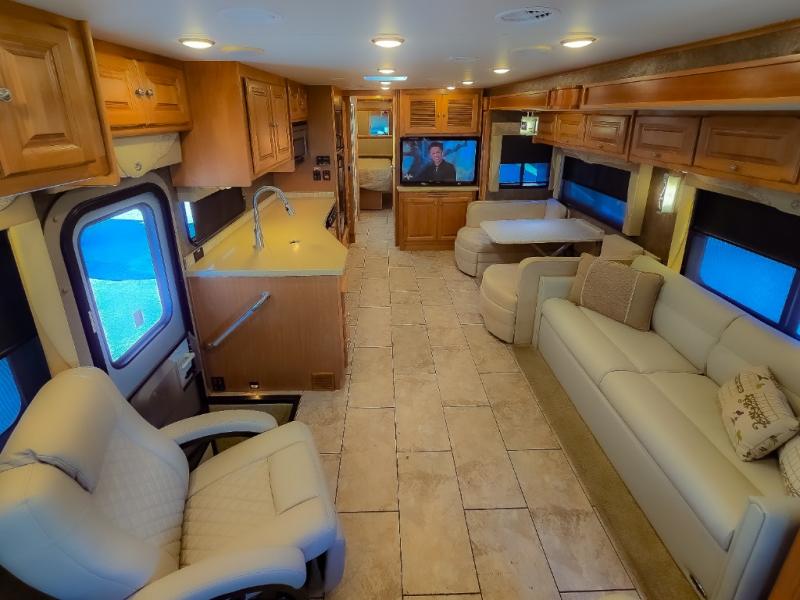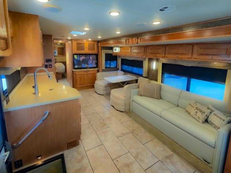 The Allegro 32 CA class A motorhome from Tiffin offers sleeping space for five and lots of floor space with double slides including a large slide out in the living/dining area.