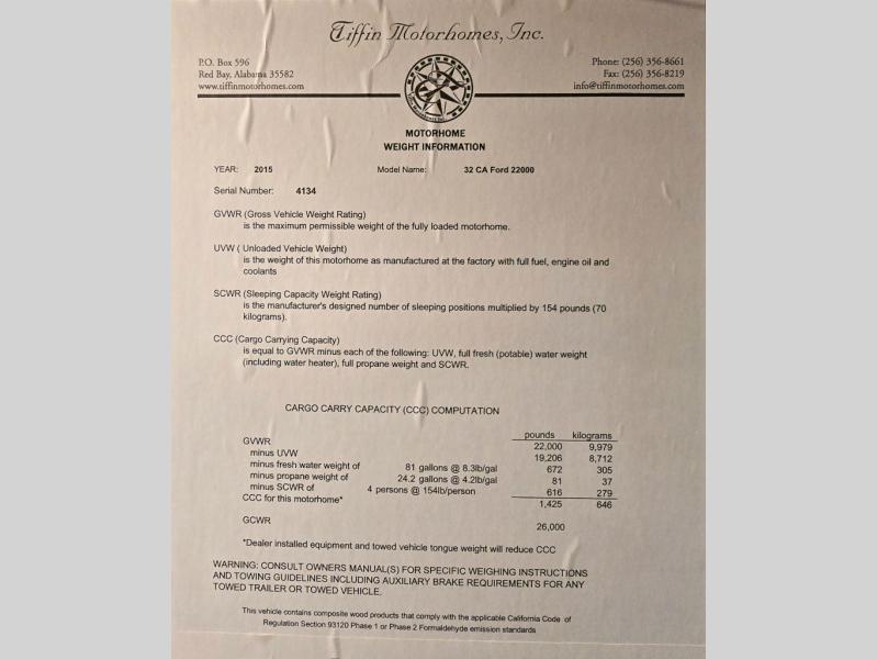 Used 2015 Tiffin Motorhomes Open Road Allegro 32CA Motor Home Class A