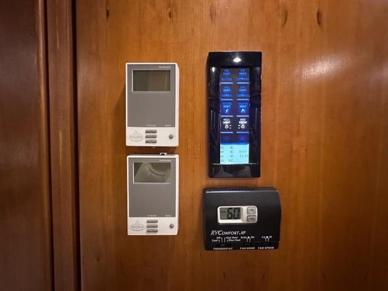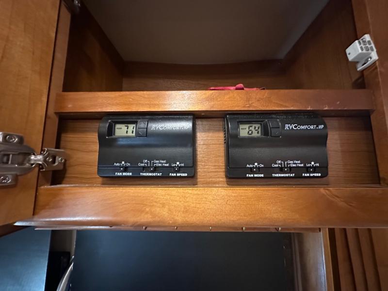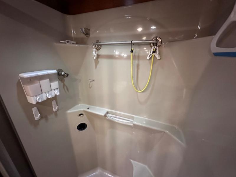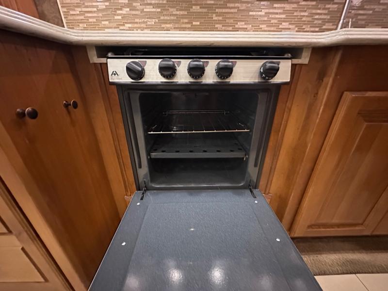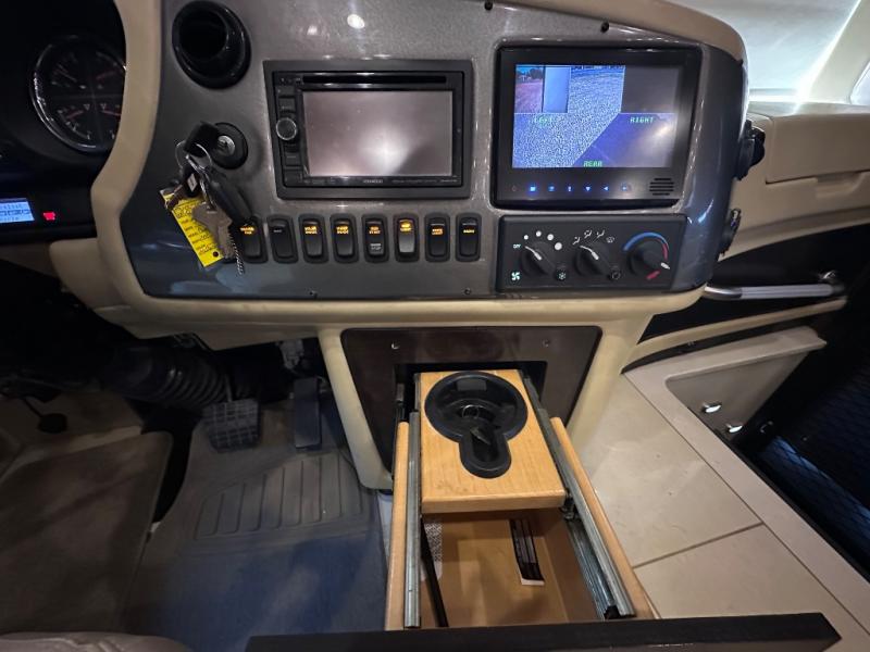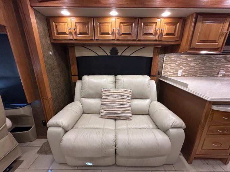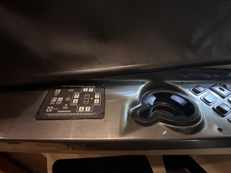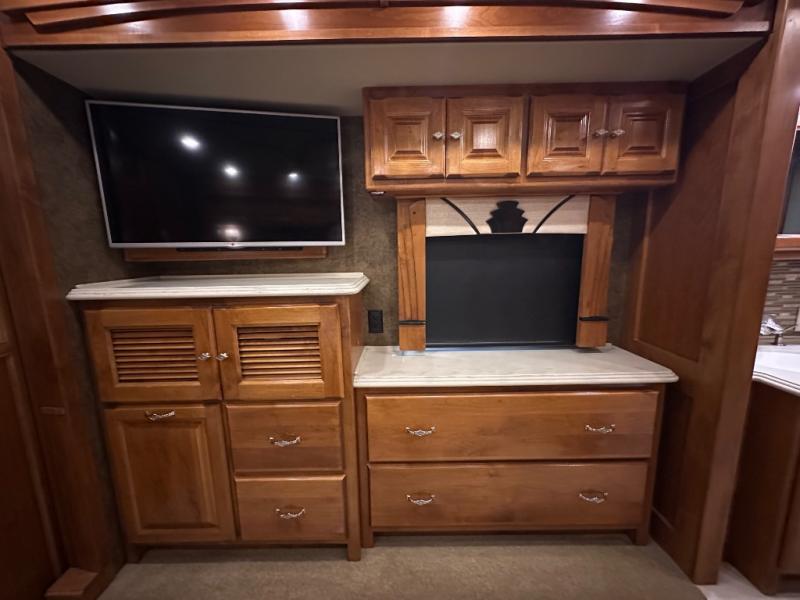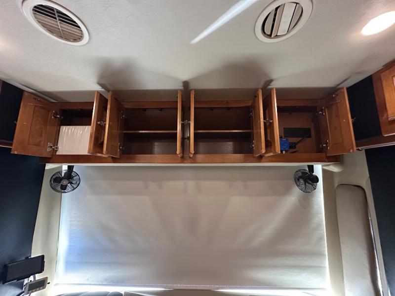 The front cab area has lots of overhead cabinets and room for an optional center mount TV.