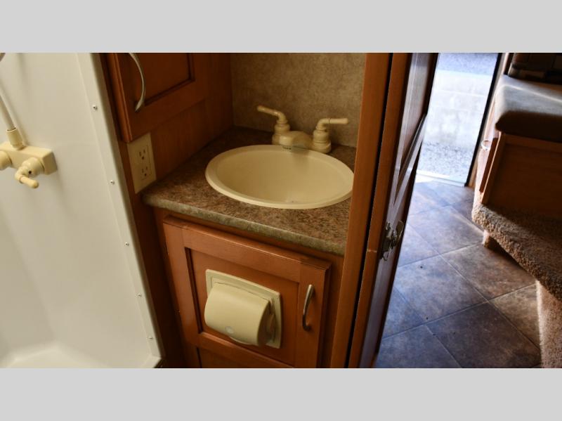 Bathroom Facilities – Compact wet bath with shower, toilet, and sink for convenience on the go