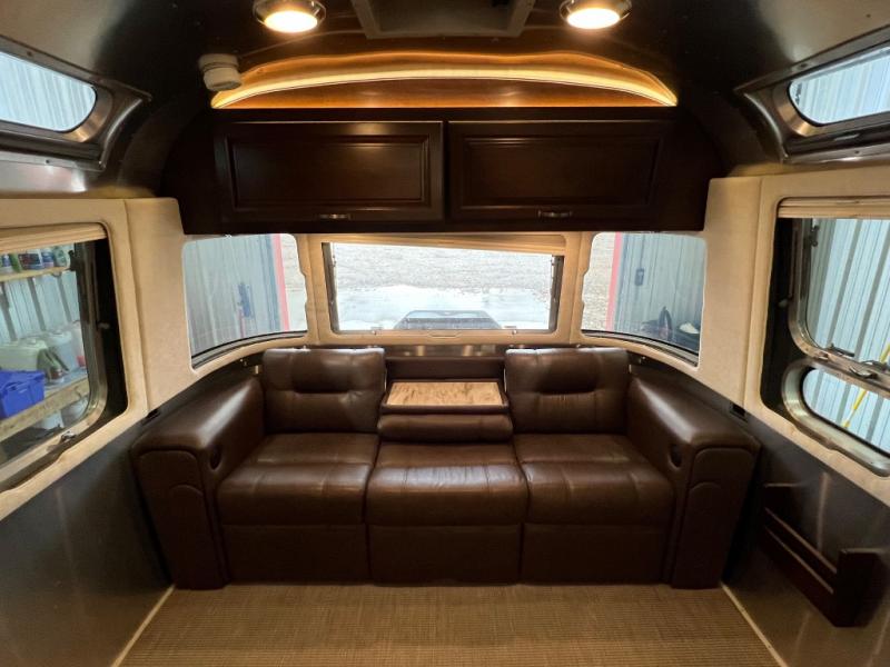 As you enter the travel trailer, along the front wall of the trailer there is a sofa with power recliners.