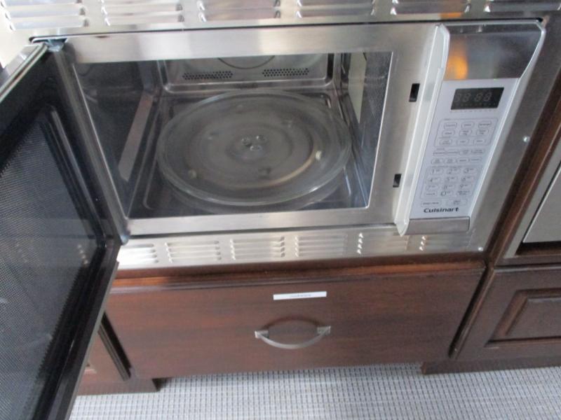 Fully-Equipped Kitchen The chef’s kitchen in this Airstream is a standout feature. Equipped with stainless steel appliances, including a three-burner stove, convection microwave, and a large refrigerator, you can easily prepare gourmet meals on the go. Ample countertop space and plenty of storage ensure you have room for all your culinary tools and ingredients.