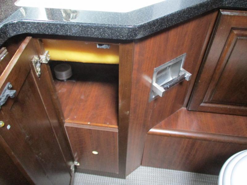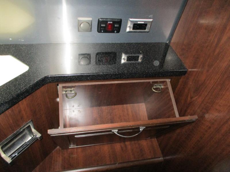 Comfortable Sleeping Arrangements The rear bedroom features a plush queen-size bed with overhead storage and under-bed compartments. Whether you’re on a weekend trip or cross-country adventure, the comfortable sleeping area will give you a restful night’s sleep after a long day of travel and exploration.