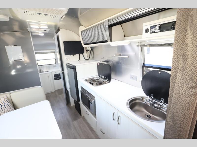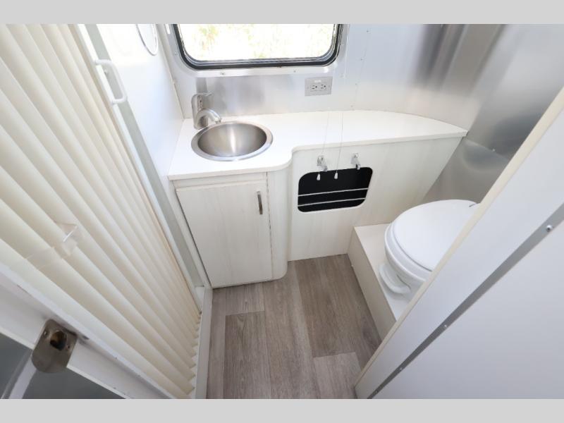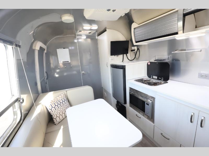 The ultra-towable Airstream Sport is a premium compact travel trailer that sets you free to hitch up and go, without leaving behind the comforts of home. Combining the single-axel efficiency of a lightweight Bambi travel trailer with more comforts than many travel trailer twice its size, the Sport maximizes space while minimizing waste. Start camping in the 22FB Airstream. This Sport travel trailer has a rear bath, a front bedroom, and a u-dinette. As you enter the travel trailer, in the rear you will find the bathroom with a shower, sink, and toilet. One side of the travel trailer has a u-dinette/bed. The opposite side offers a storage cabinet, LED TV, refrigerator, two burner range, sink, and lots of extra counter space. In the front, you will find a bed with a nightstand on one side of the bed, plus more.